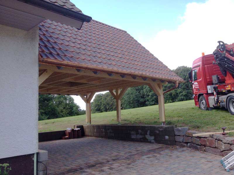 Ein handwerklich nach alter Zimmermannskunst individuell gebauter Carport ist durch baumaßliche Bedingungen und die Berücksichtigung von Kundenwünschen ein Unikat.