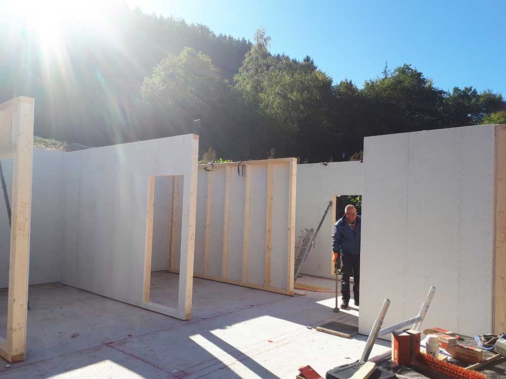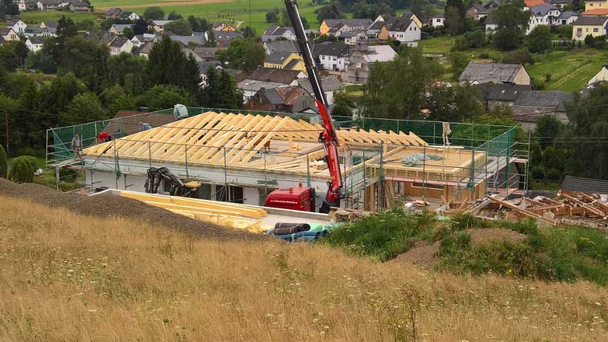 Aufgrund der witterungsunabhängigen Vorfertigung der wesentlichen Bauteile in unserer Halle und einer raschen Montagezeit auf der Baustelle wirkt sich die Verkürzung der Bauzeit positiv auf die Gesamtfinanzierung aus.