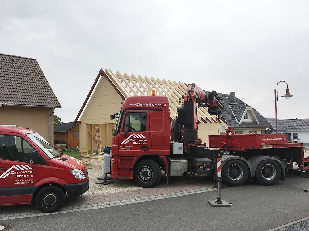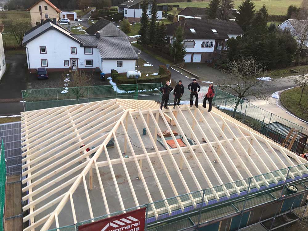 Gerne erstellen wir Ihnen ein Angebot über einen Dachstuhl inkl. der Dachdecker- und Klempnerarbeiten.