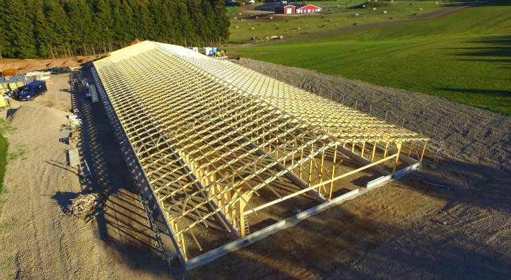 Hallen aller Art wie: Industriehallen, Gewerbehallen, Büro- & Ausstellungsgebäude, Reithallen, Lagerhallen, Produktionshallen oder landwirtschaftliche Nutzhallen können von uns unter dem Einsatz moderner Holzbauteile wie: Leimholz- oder Fachwerkbinder mit großen stützenfreien Spannweiten errichtet werden.